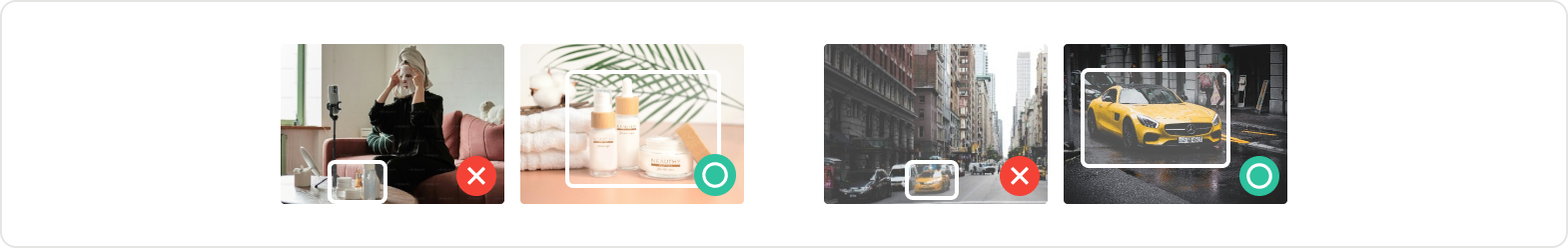 The objects you want to search for must be sufficiently large and detailed. For example, using an image of a car in a parking lot is more likely to yield precise results than an image of a small branded pen on a table in a large room.