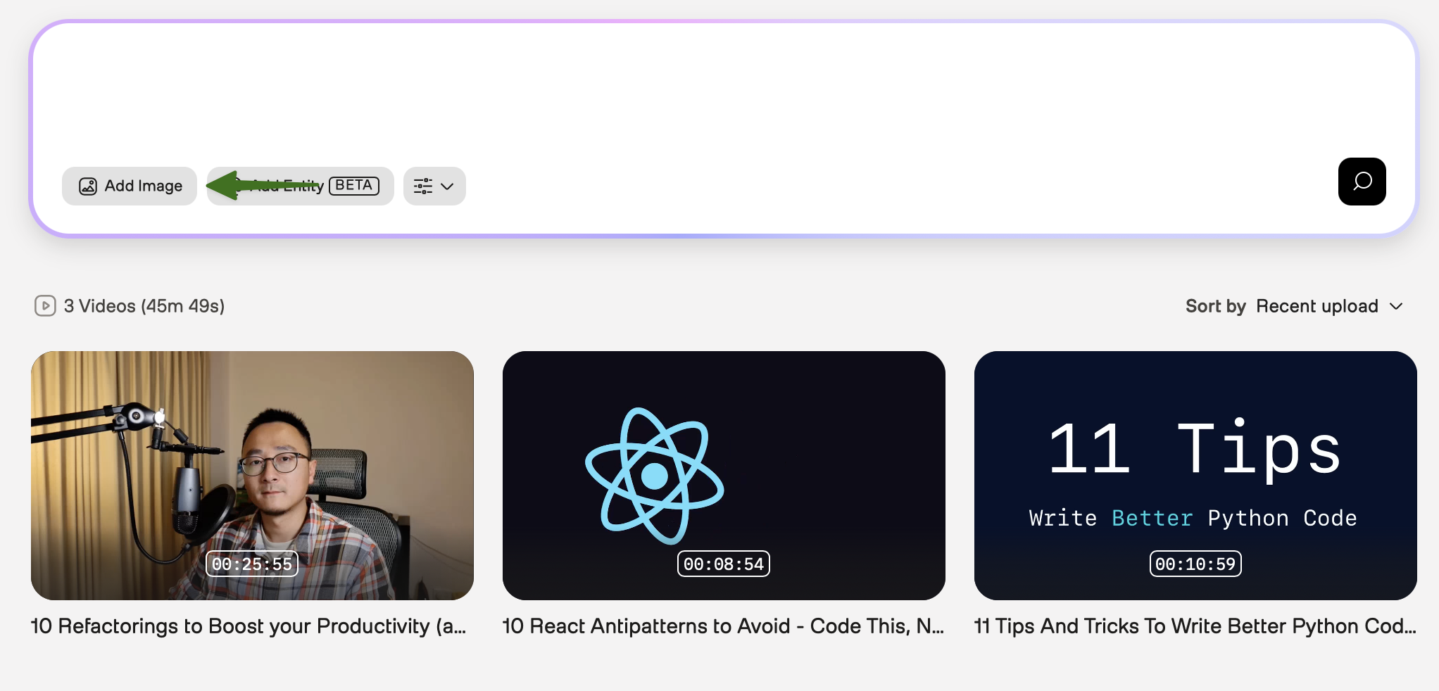 - Image queries: Select the Add Image button and upload an image: